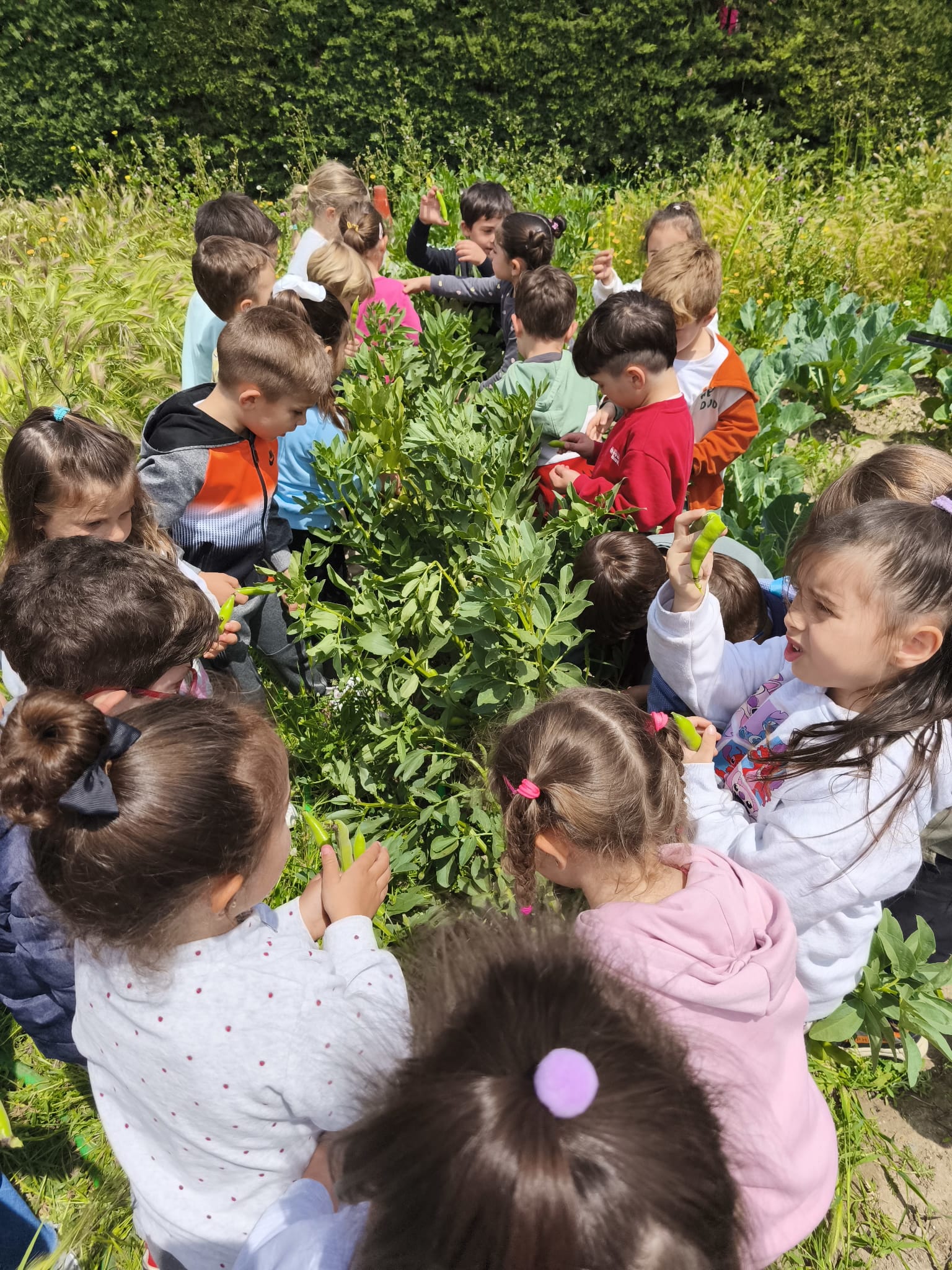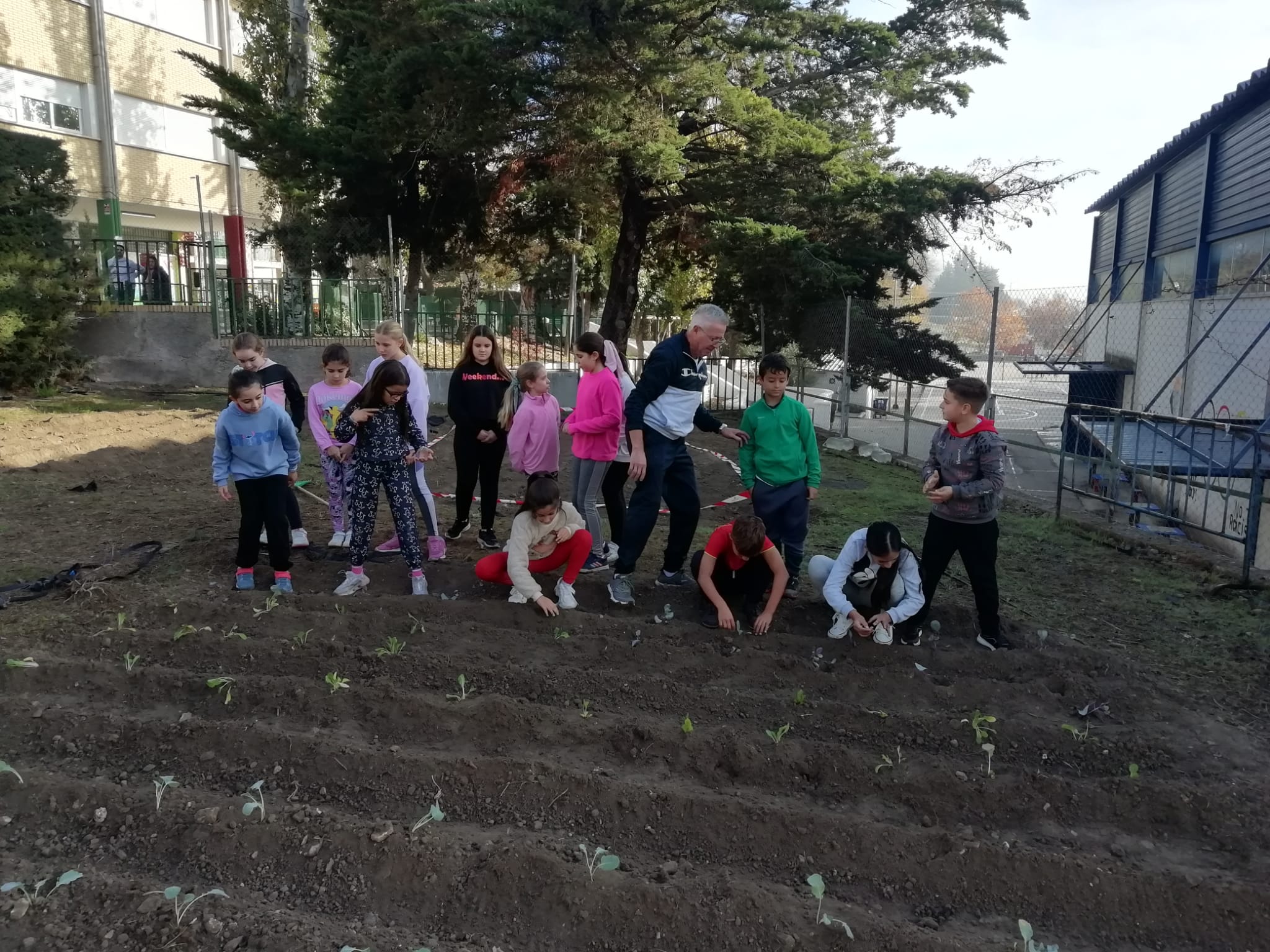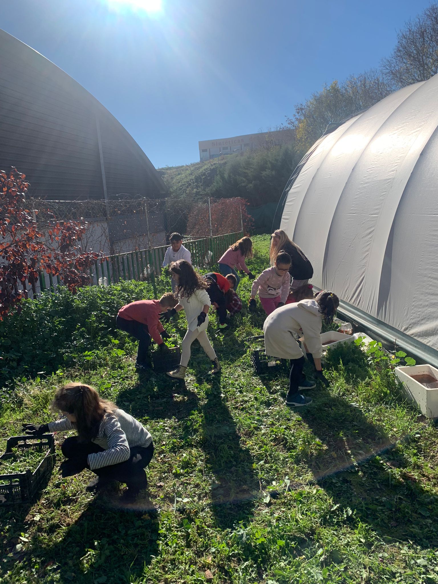 El gran invernadero, corazón del huerto escolar, permite que el alumnado observe de cerca los ciclos de la vida vegetal durante todo el año. En su interior, los niños y niñas siembran, riegan, trasplantan y cuidan diferentes plantas, aprendiendo a ser pacientes, responsables y respetuosos con el entorno. La magia ocurre a la vista de todos: semillas que despiertan, flores que se abren, hortalizas que crecen y frutos que se recogen con orgullo.