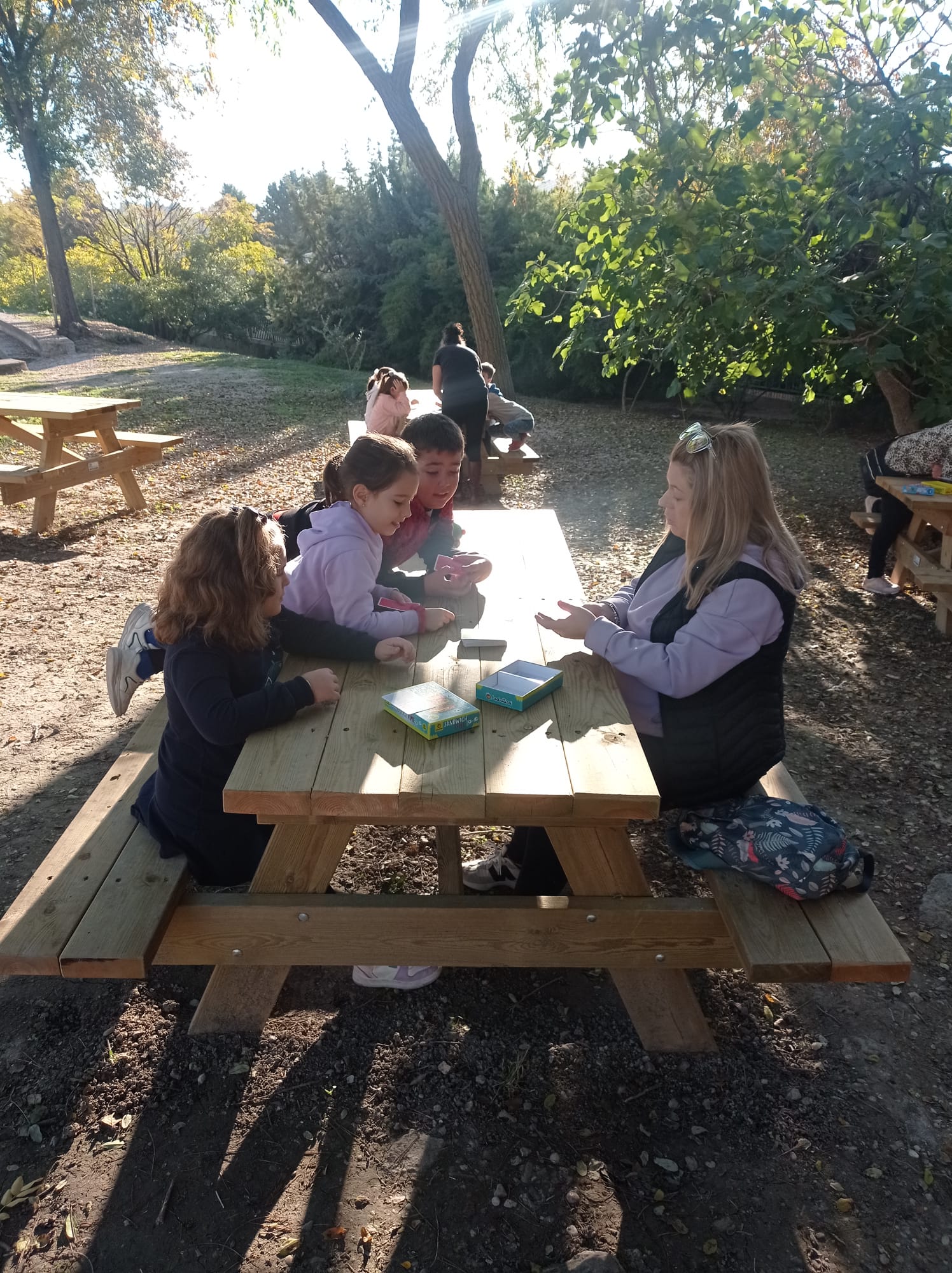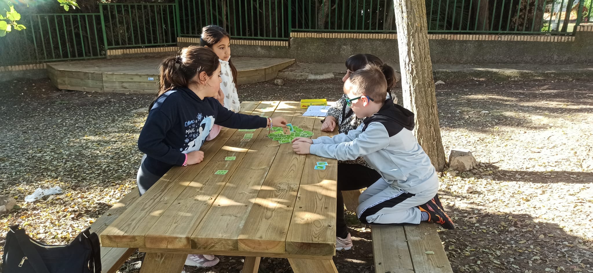 El aula de las mesas de picnic es uno de esos rincones del CEIP Juan Pasquau que siempre está lleno de vida. Bajo el cielo abierto, rodeado de aire fresco y con un ambiente relajado, este espacio se convierte en un lugar perfecto para dar clase de una forma diferente, más cercana y natural. Las mesas de picnic permiten trabajar en equipo, conversar, escribir, leer o realizar actividades al aire libre mientras se disfruta del entorno.
