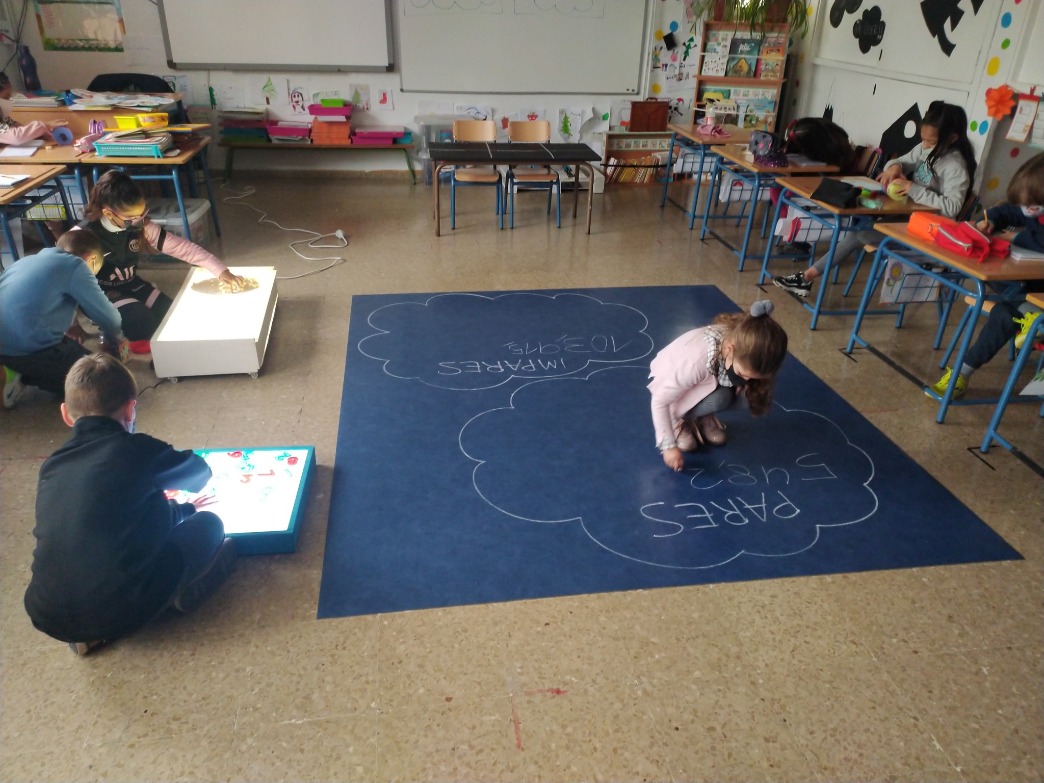 En el primer ciclo, las clases han incorporado la asamblea, igual que en Infantil, porque se ha convertido en un recurso fundamental para todos los niveles: un espacio para conversar, organizar el día, compartir ideas y fortalecer la convivencia. Esta zona se integra de forma natural en el aula, creando un ambiente cercano y acogedor.
