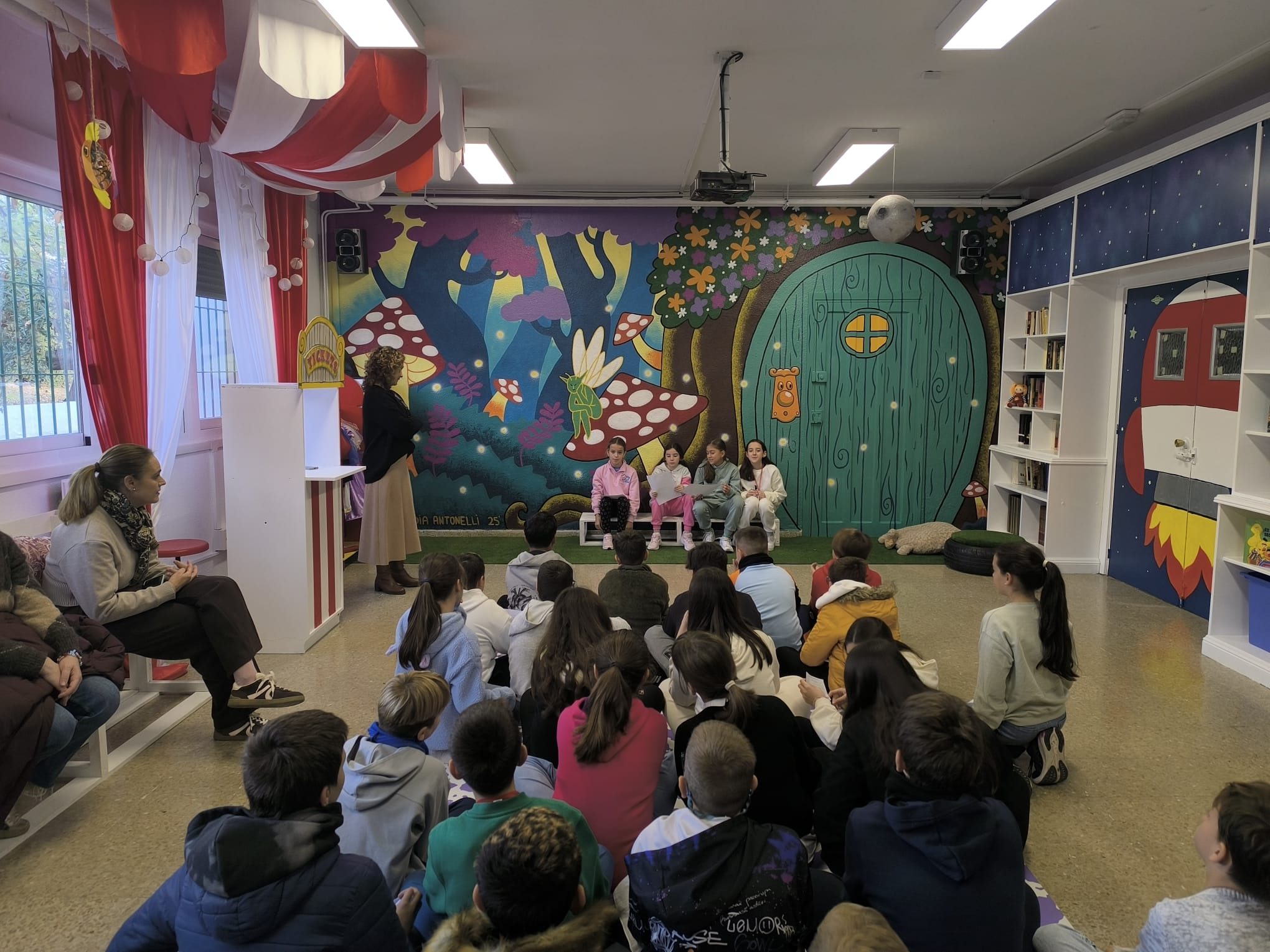 La biblioteca es también un lugar de encuentro: se escuchan historias, se recomiendan libros, se crean clubes de lectura, se investigan curiosidades y se celebran actividades que convierten la lectura en una experiencia viva y emocionante. Cada visita es una oportunidad para desarrollar la comprensión, la creatividad, el pensamiento crítico y el amor por la literatura.